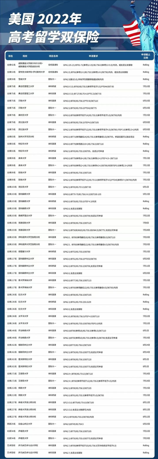 最后附上一份高考双保险留学申请截止表供大家参考!